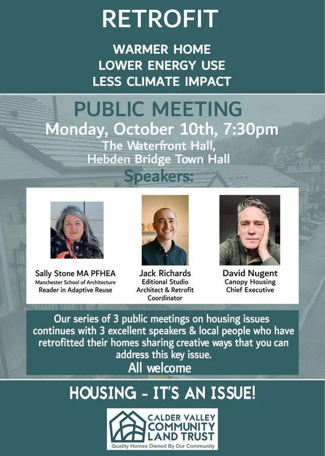 Calder Valley Community Land Trust presents the second in a series of three public meetings on the theme “Housing: It’s an Issue”, with three guest speakers sharing their ideas.